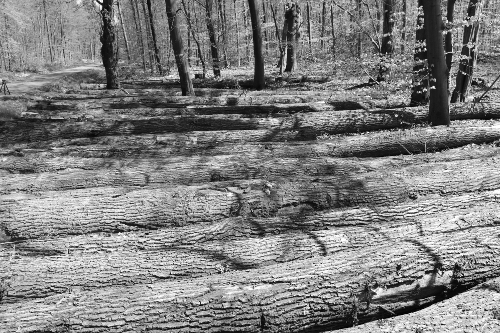 Frisch gerodetes Eichenholz, gesehen am 1. Mai 2017 auf dem Weg zum Naturdenkmal im Hasbruch: der 1000 jährigen Friederiken-Eiche mit dem Hinweis für die Besucher: „Dieses Wunder ist eine Gabe der Natur, die Gott für alle geschaffen hat. Habe Ehrfurcht vor Ihr, denn Sie ist, wie Du ein Teil der Schöpfung.“