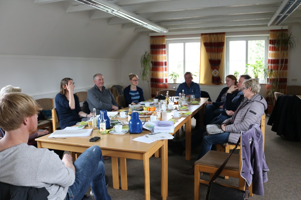 Kerstin Polzin trifft interessierte Landwirte für die Vorbereitung einer Schreibwerkstatt, Impressionen ihrer Pilgerreise von Landwirt zu Landwirt in der Gemeinde Hude.