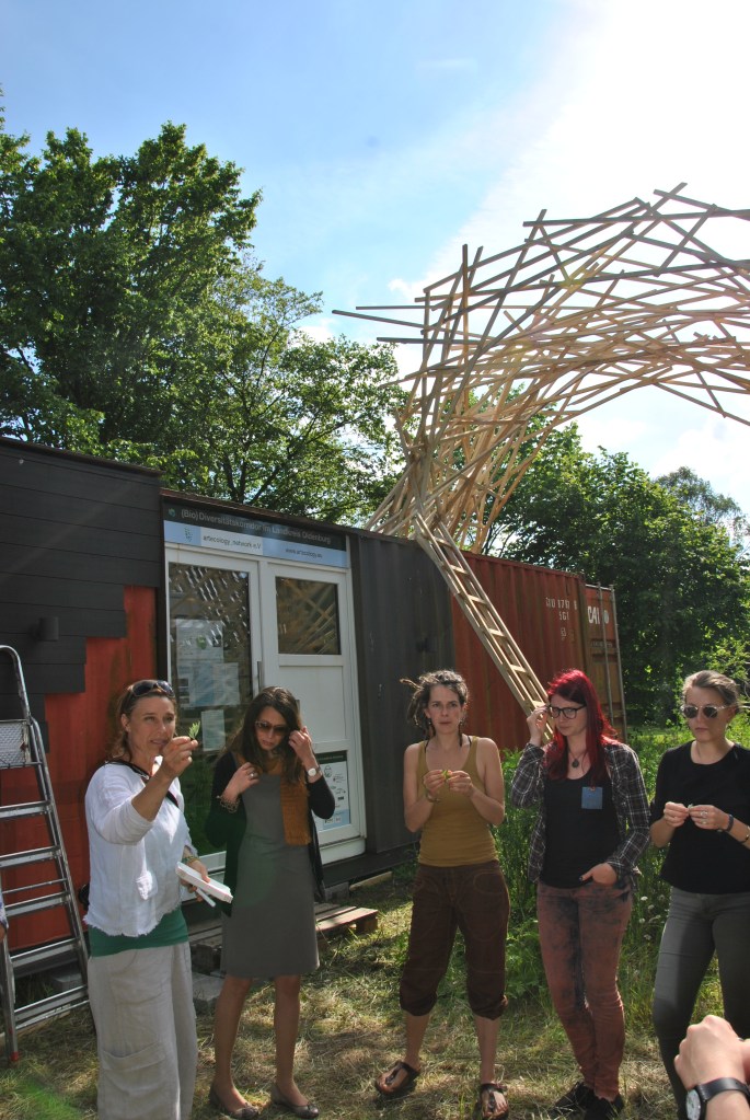 | Hochsitz für Innovationspotentiale Was birgt Chancen, was funktioniert und was nicht? Ein temporärer Treffpunkt bietet Vorab-Analysen und Feldforschung: Die „3×3 – Künstlerisch Betriebliche Problemlösung“ ist ein effektives und anerkanntes Werkzeug, um ein kreatives, innovatives „Perspektiv-Wechsel-Marketing“ zu erarbeiten und die nachhaltige Verzahnung der Klimaschutz-Handlungsfelder des Landkreises Oldenburg durch Lösungsansätze zu begleiten. |